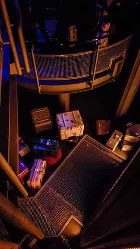 At the exit of the ride guests cross over the main walkway and down into a gift shop on the other side.