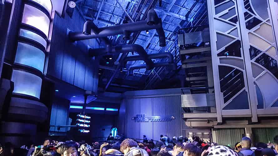 Once inside guests find themselves in a cavernous space port.