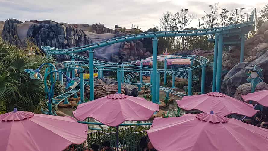 Flounder's Flying Fish Coaster is a junior coaster adjacent to Triton's Kingdom in Mermaid Lagoon.