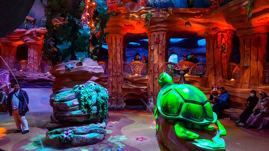The level of detail is off the charts. Not just custom mosaics, but the tiles themselves are embedded with Little Mermaid characters.
