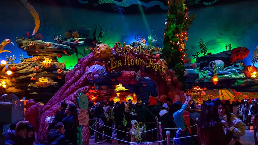 Blowfish Balloon Race is a simple spinning ride with balloons that swing outwards.