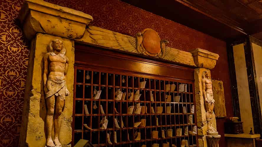Cabinets full of artefacts.