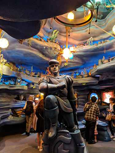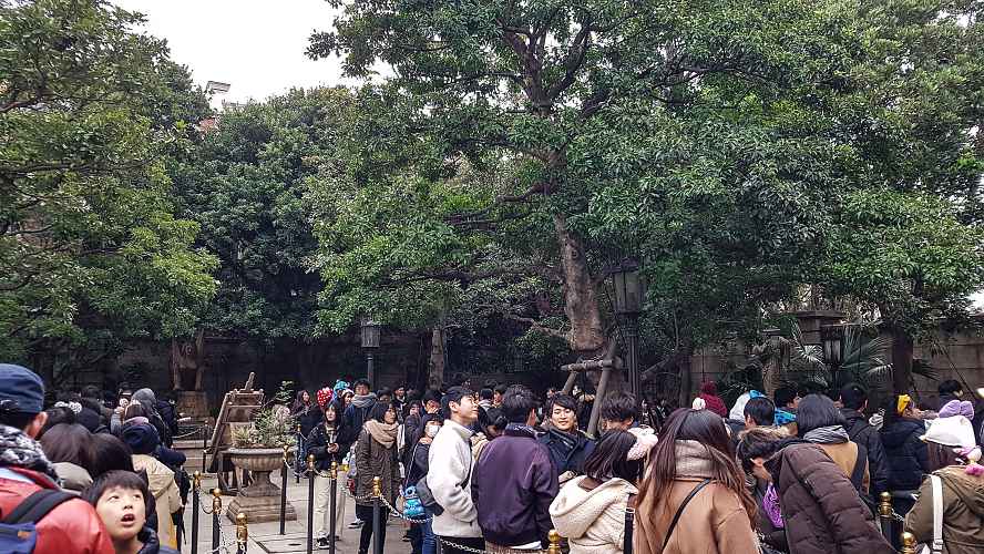 The queue matches the theming of the American versions of this ride.