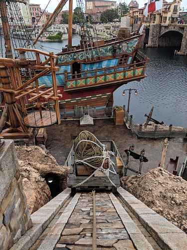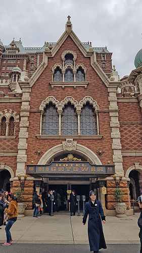 Like its counterparts at other Disney parks, the theming is like that of a haunted abandoned hotel.