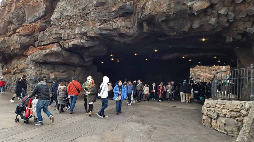 Guests enter the area via a series of tunnels.