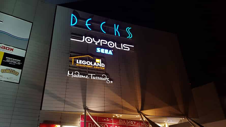 Tokyo Joypolis is located at an entertainment and shopping precinct called "Decks" in Odaiba.