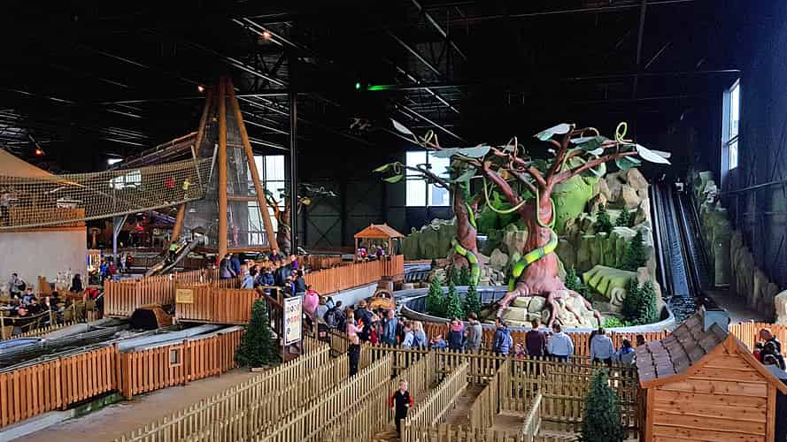 The ride is somewhat low capacity, so an interactive queue keeps crowds occupied, with lots of things to activate in each room of the chalet.
