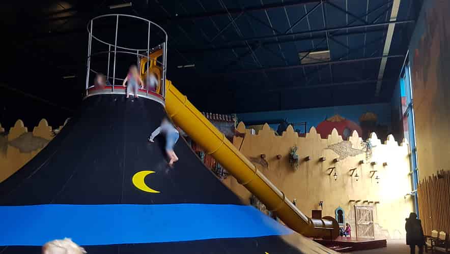 Kids scramble up and slide down at Klimhoed (Climbing Hat)