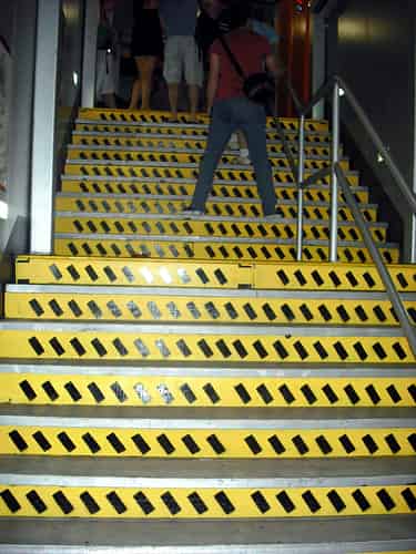 The part of the queue where the stairs are has had some work...new signage on these doors for instance.