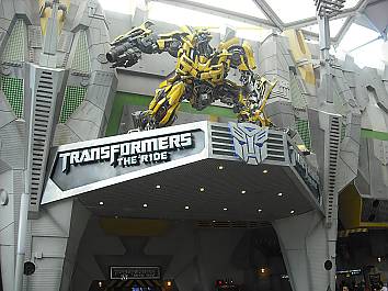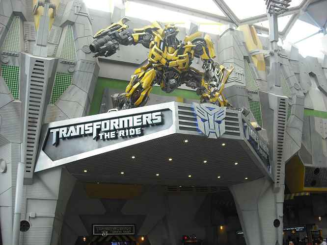 Bumblebee stands proudly over the entrance to Transfomers The Ride, the newest attraction at the time of this visit.