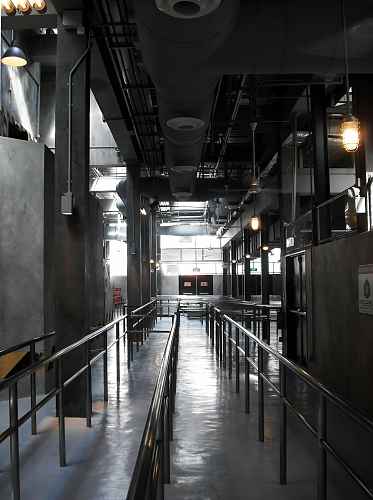 The queue enters a quite well done military base themed environment, with concrete, conduits and control panels as far as the eye can see.