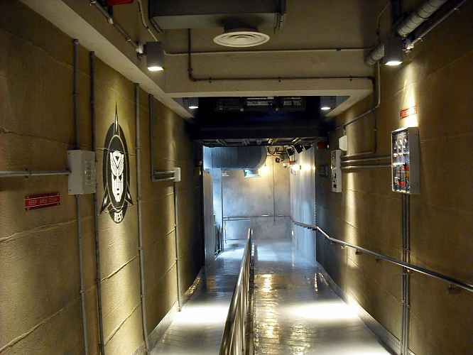 Various screens throughout the queue inform guests that the Decepticons are carrying out an assult on this base and are trying to steal the allspark.