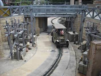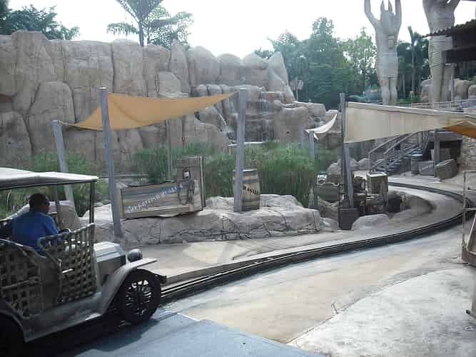The ride is a little more advanced than your average car ride, with a few simple animatronics and sound effects along the way. The supports on this bridge for instance fall away as you drive past.