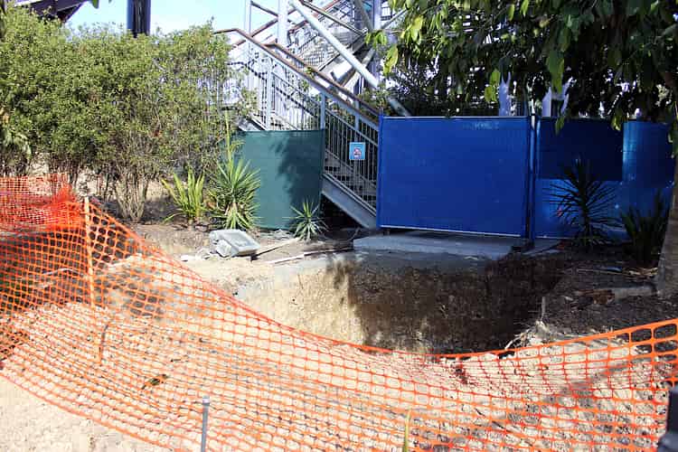 Foundation work continues -- here is the groundwork for one of the slide's many support columns.