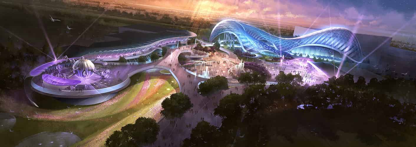 TRON and the surrounding Tomorrowland is a modern vision of the future.