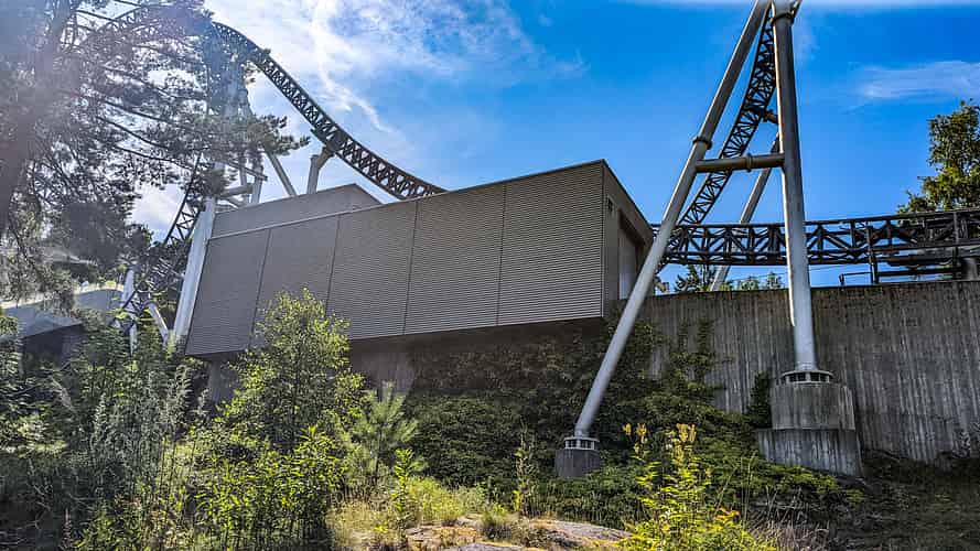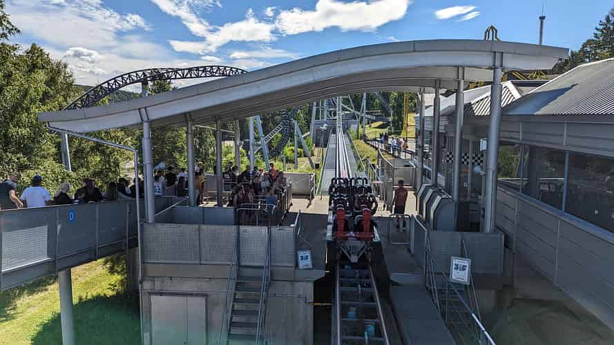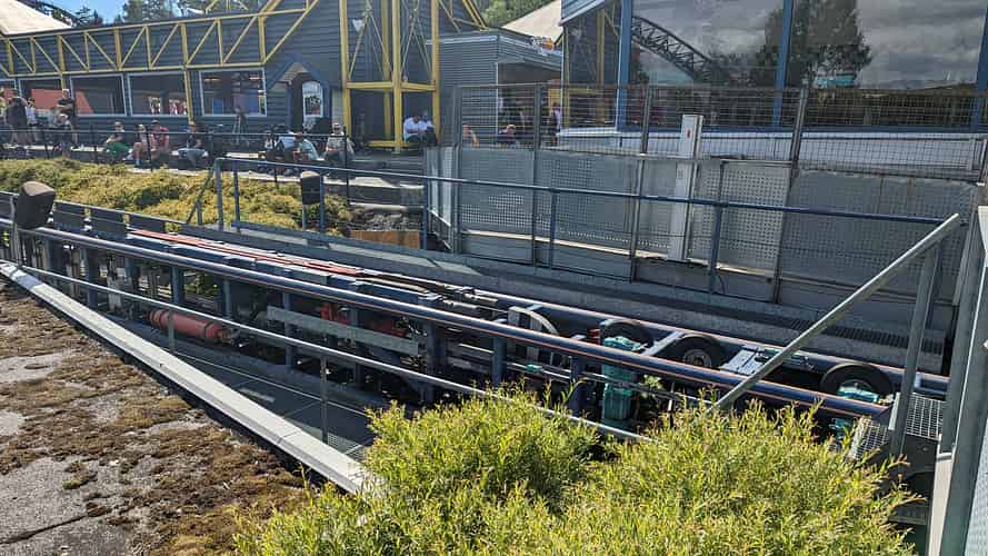 The location of the launch affords bystanders a good view, and offers a rare glimpse of the whole launch mechanism. On other Accelerator coasters the launch is often elevated, or set back from adjacent walkways, making viewing difficult.