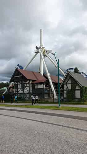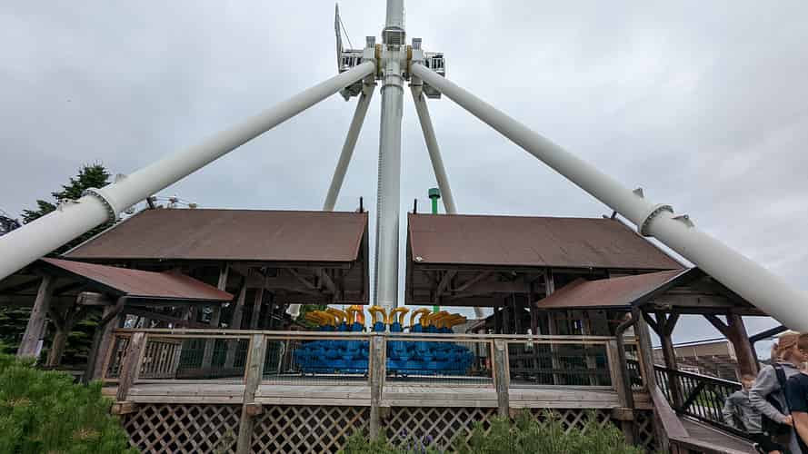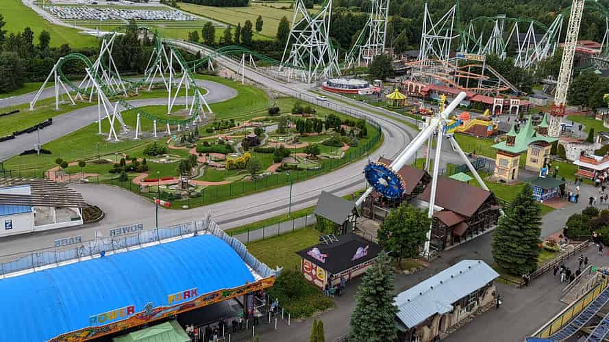 Overloooking Typhoon 360, the Minigolf course, and the Pitts Special roller coaster.