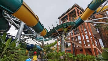 Kids attractions on the left, with the Proslide raft slide tower on the right.