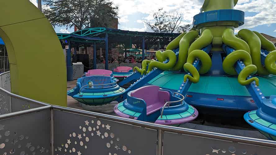 Kang & Kodos' Twirl 'n' Hurl is a spinning ride, much like the Dumbo rides at Disney.