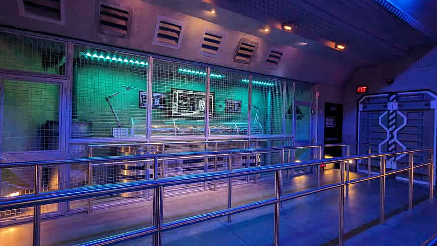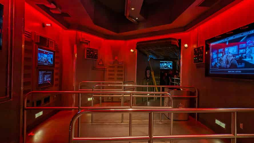 Riders wear 3D glasses, and are taken through a dark ride that combines real life sets and SFX with projected 3D scenes.