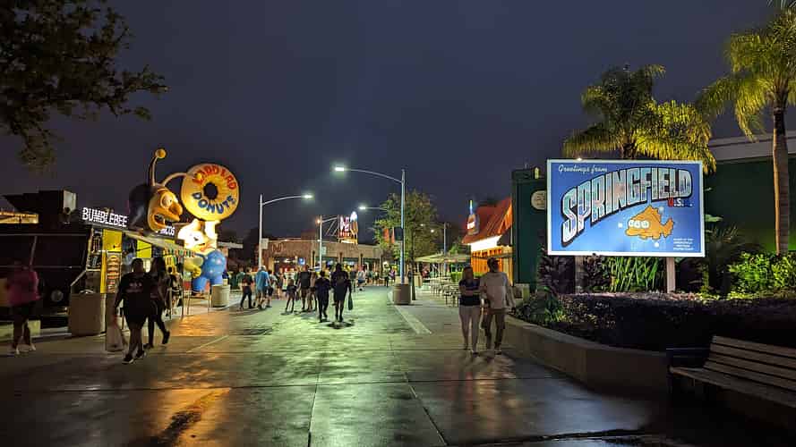 Springfield USA originally contained just the Simpsons ride, but was expanded into a full dining precinct.