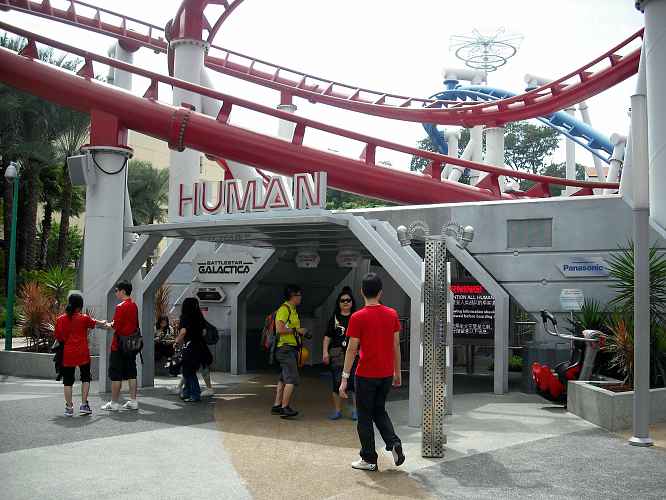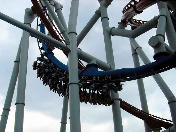 The Cylon track is a blue inverted roller coaster with 5 inversions.