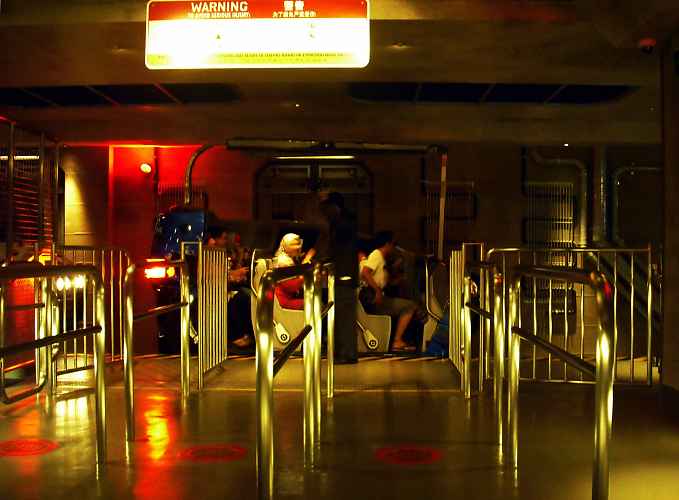 Various screens throughout the queue inform guests that the Decepticons are carrying out an assult on this base and are trying to steal the allspark.