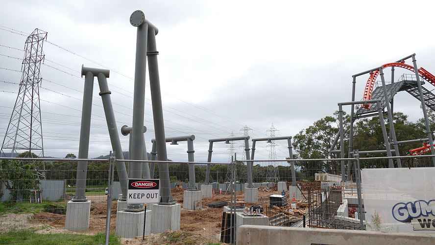 The support columns are ready for the high speed overbanked U-turn track to be installed.