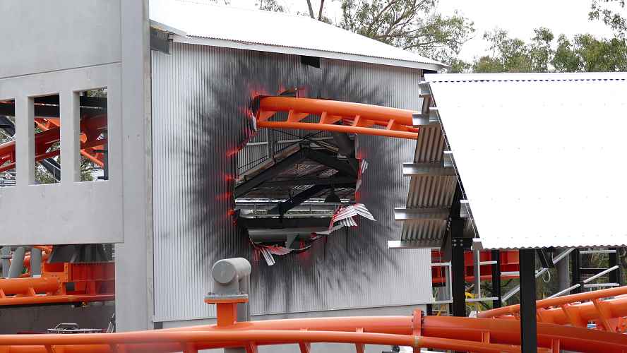 TNT features a station fly through, where you will explode through the tin shed. Theming is starting to take shape.