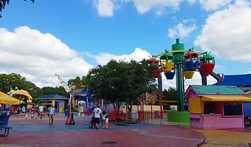 Up, Up, and Away is a small scenic tower ride for kids with revolving fruit shaped pods.