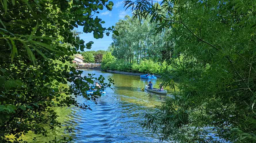 Pedal boats and canoes on the lake at the back of the park.