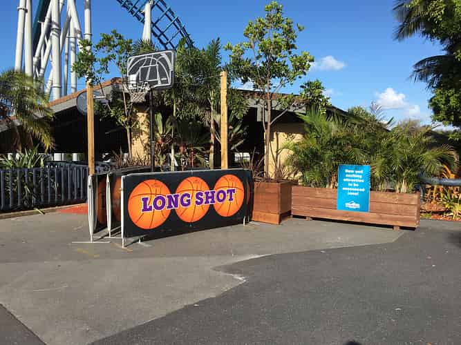 The basketball game has been relocated from the front of the park to make way for Carnivale's main stage.