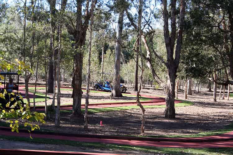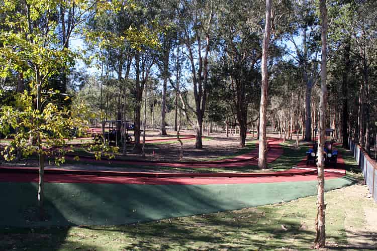Guests keep their foot on the accelerator to keep the engine going. A steel rail along the centre of the track guides the cars.