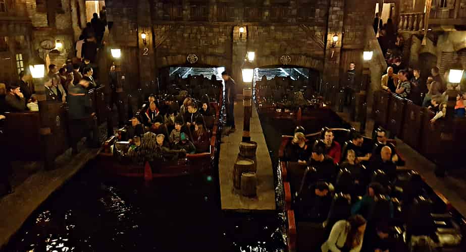 The ride starts off as a dark ride, with some very atmospheric scenes and impressive special effects.