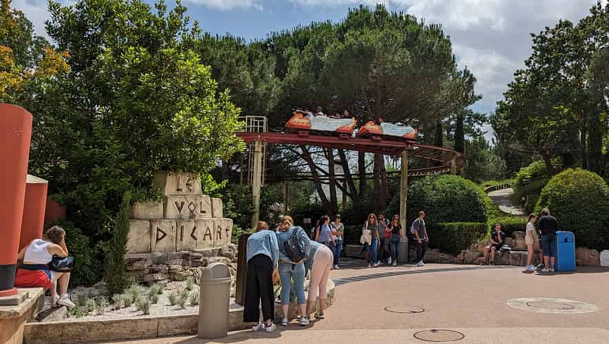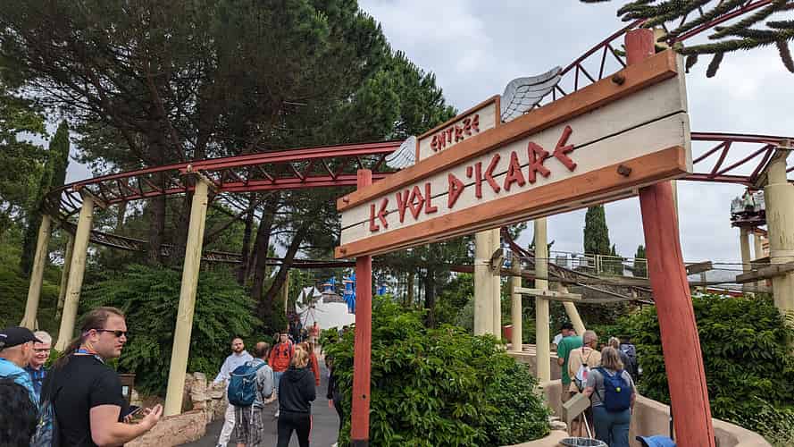 The lift hill is enclosed to allow operation in wet weather. Of course at the top is the sun, but just like Icarus you fly too close...