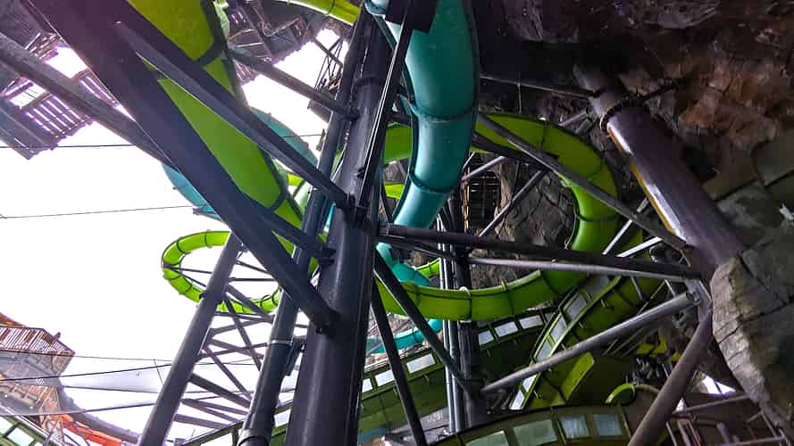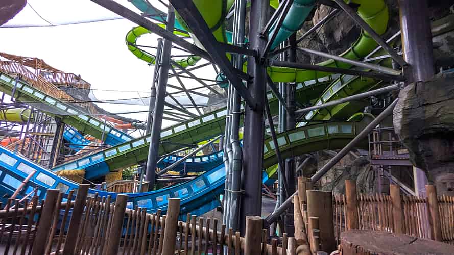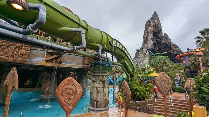 Krakatau Aqua Coaster under the Kala & Ta Nui Serpentine body slides.