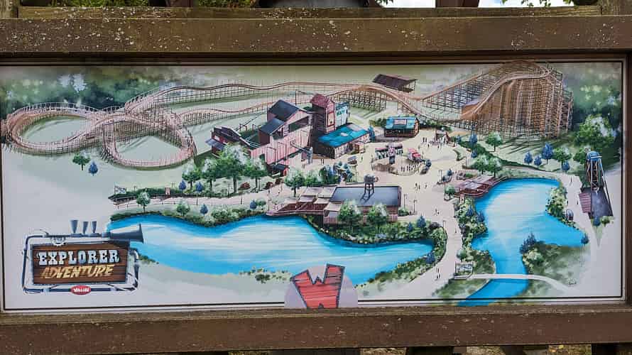 Concept art of the Explorer Adventure zone, with Timber as its flagship attraction.