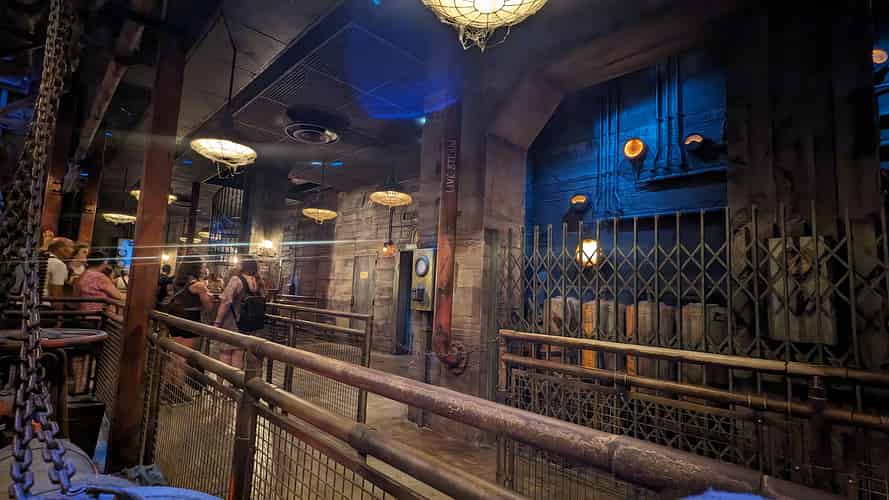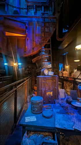 The ride vehicle takes the form of a maintenance lift. This vehicle is carried up and down in a larger lift, with special effects at each floor and plenty of thrills.