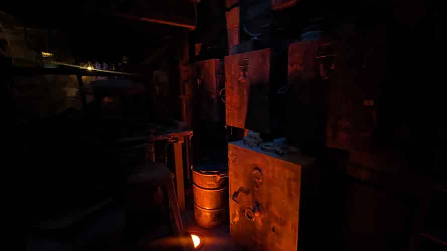 Giant boilers, hotel furnishings under repair, dripping pipes...