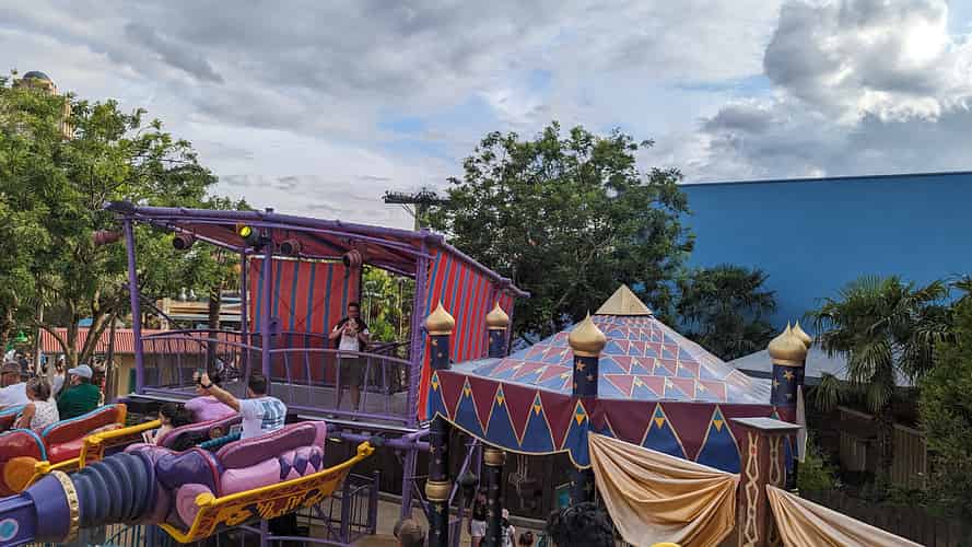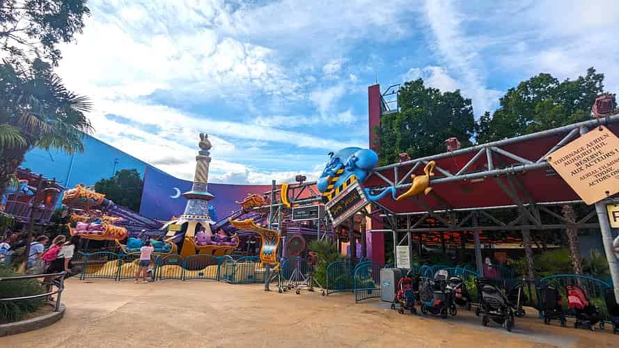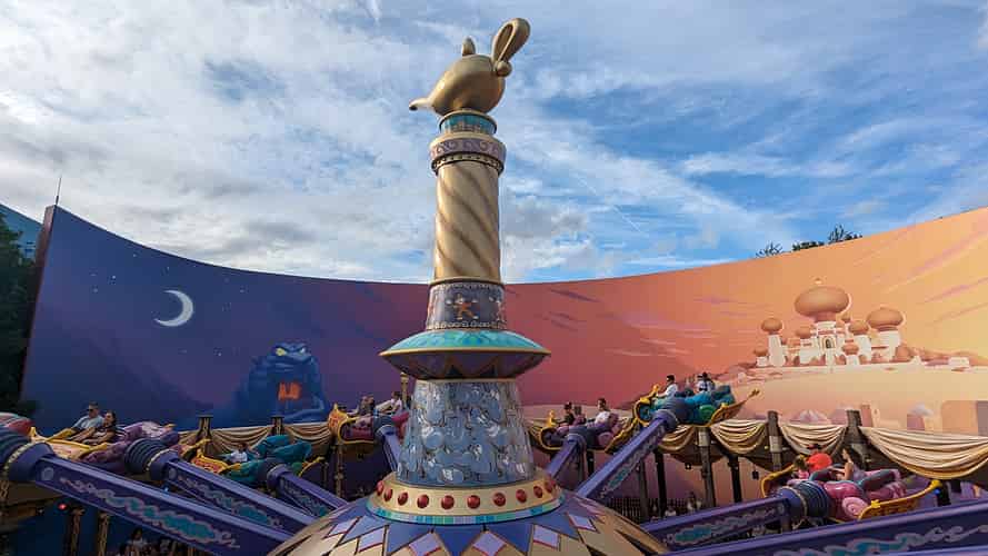 Les Tapis Volants - Flying Carpets over Agrabah takes the theme of a "live filming" of the Aladdin animated film.