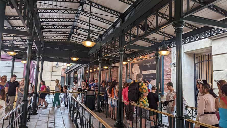 The queue takes you through the rooftops of paris, with sets gradually increasing in size.