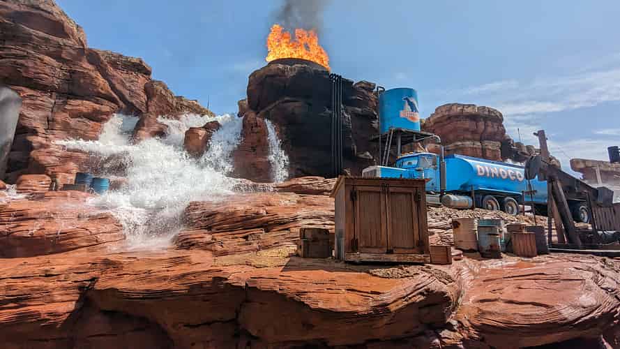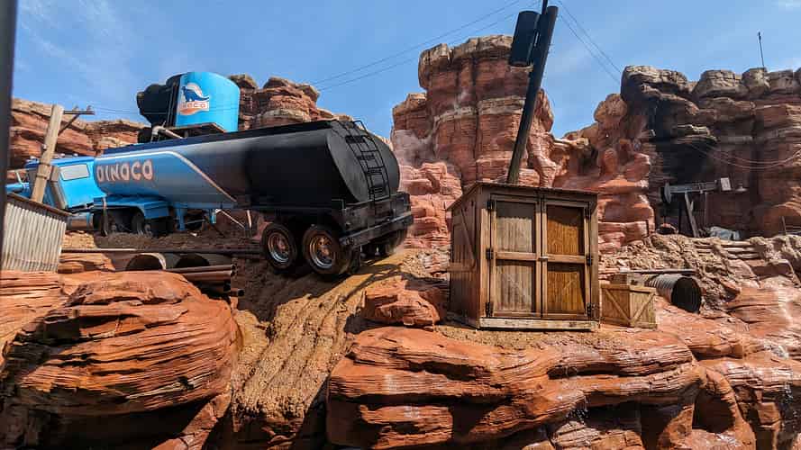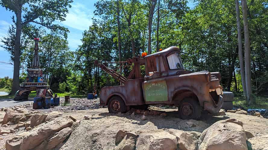 At the end of the tour you pass Tow Mater with his recreation of the Eiffel Tower. But...That poor tanker.