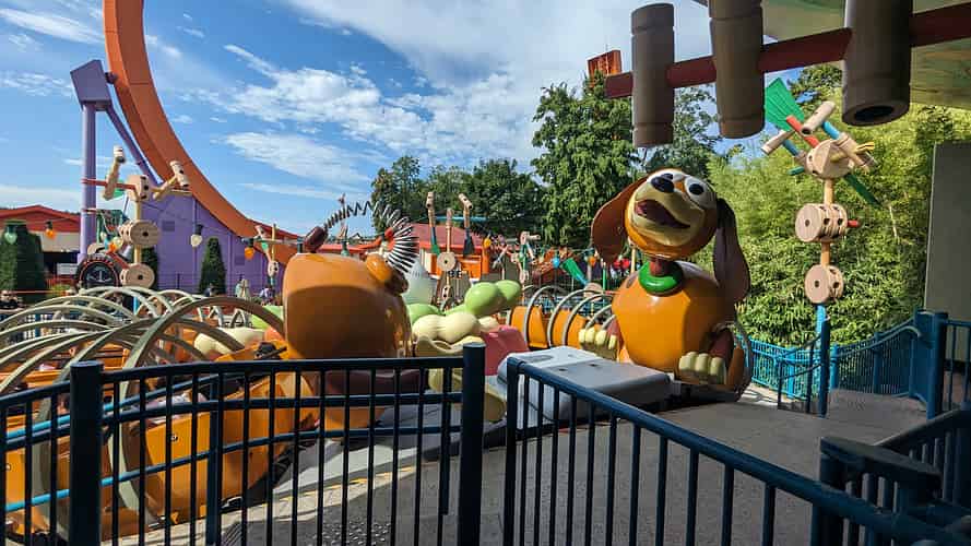 Slinky Dog Zigzag Spin is a well themed version of the common Matterhorn type ride.