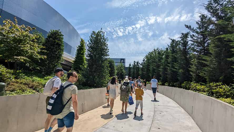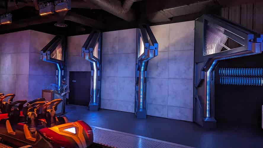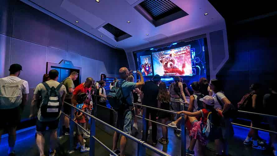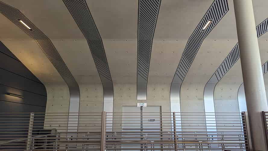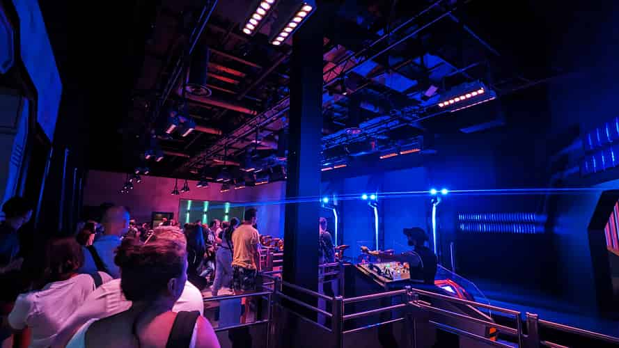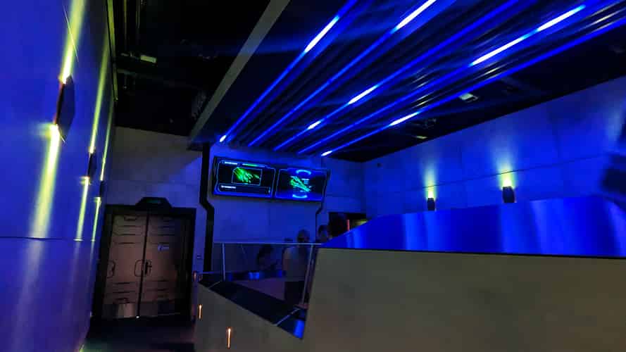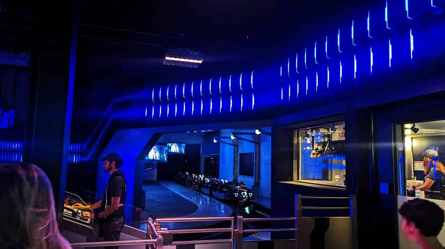 The modern style continues into the indoor queue.