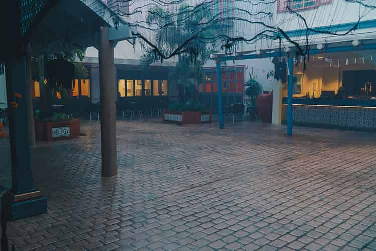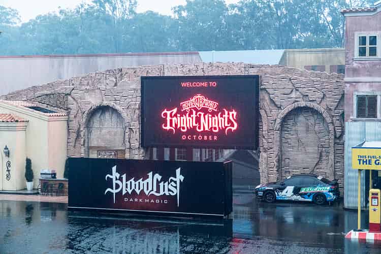 The courtyard and function room adjacent to Rick's is the exclusive lounge for Ultimate Terror Tour participants. Movie World even rolled out weather befitting a horror film for last weekend's Fright Nights.
