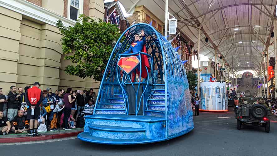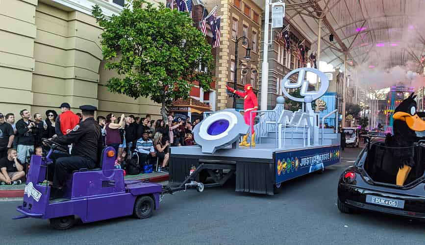 The Justice League floats arrived at the park around 10 years ago, and delivered a step improvement to the parade.