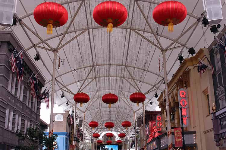 The entire of Main Street has been elaborately decorated with lanterns and wraps around the roof support structure.