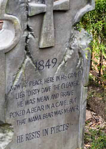 The various tombstones feature limericks about employees of the park, past and present.