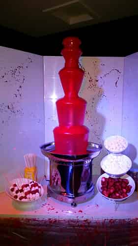 Chocolate fountain in the lounge on the Ultimate Terror Tour - Movie World Fright Nights 2014