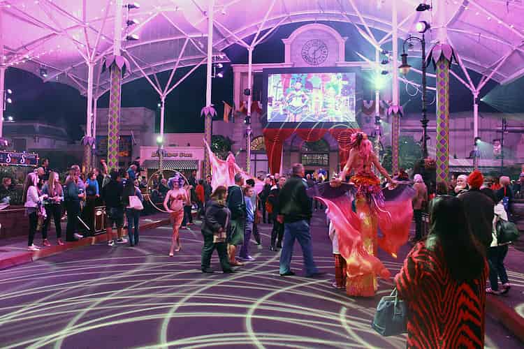 Throughout the park there are sideshow acts performing throughout the night.